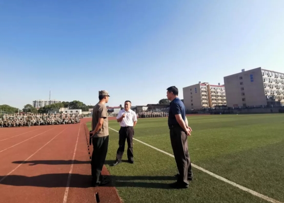 随后,叶书记认真听取了军训总教官的工作汇报,详细了解了训练安排、思想教育、学生状态等情况,他要求全体施训教官严格施训、科学施训、劳逸结合,切实发挥军训在培养学生爱国情怀、国防意识、纪律观念、增强学生身体和心理素质方面的积极作用。同时,叶书记与新生辅导员进行了亲切交流,他强调,辅导员要了解学生需求,加强人文关怀,关心学生身心健康,切实做好后勤保障工作,分类施策,做到疫情防控、安全稳定、军训工作同步推进。