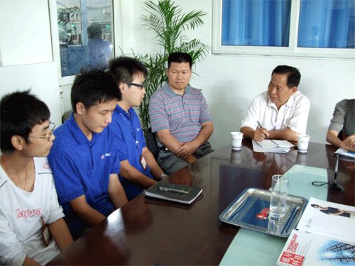 2010年7月23日,我院李兴业院长率领副院长罗先进、朱奇卫及就业指导中心负责人一行前往宁波裕人针织机械有限公司进行调研,受到了公司常务副总经理马铁东、人力资源部胡雪梅经理热情接待。马铁东副总经理代表公司对李院长一行表示热烈欢迎,并详细介绍了公司近几年的发展情况。他说公司在面临金融风暴以后,由于企业掌握了核心技术,产品升级快,售后服务到位,为企业赢得占领市场取得了关键作用。他对我院自2007年至今为公司输送112名合格员工表示衷心感谢,并希望与我院进一步加强校企合作,力争双赢。李院长与马总就人才培养、顶岗实习、校企合作进行了交流,并介绍了我院教育教学、人才培养目标改革的情况。