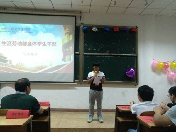 我校三创工作的如火如荼进行中,为配合“三创”工作,更高质量的服务于全校师生,让全校师生有一个更加优美的学习与生活环境,校学生会生活劳动部(大学生权益部)有幸邀请了我们的学工保卫处李晓云老师、校学生会主席团成员、各生活劳动部分管主席,联合三院生活劳动部以及五年制大专部生活劳动部的每位同仁,于5月16日晚19:30在明理楼110教室举行了生活劳动部工作交流晚会。