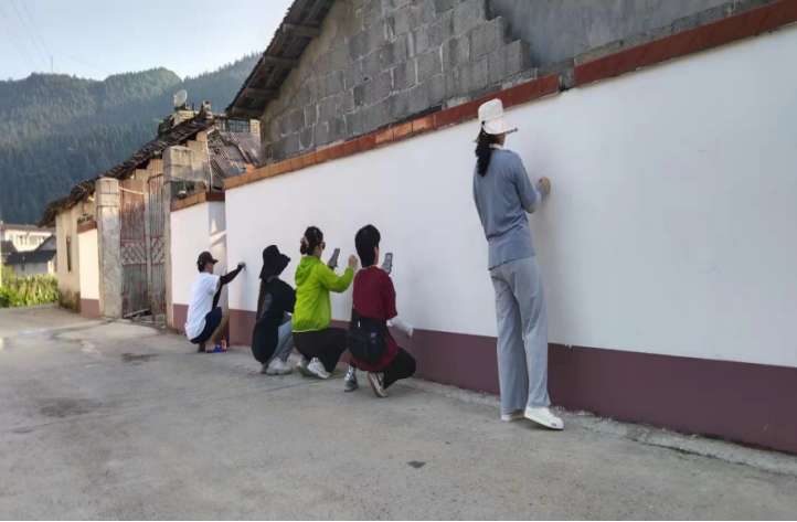为深入学习贯彻习近平总书记关于实施乡村振兴战略的重要论述,推进美丽乡村建设,切实帮助改善乡村人文人居环境,近日,管理艺术学院动漫设计专业教师张熳贤带领环艺1201彭兴旺、环艺1202胡婧阳、环艺1203宋菁思、李诗琪等学生组建教学与社会实践志愿团队前往湘西花垣县土地村开展2022年暑假“乡村振兴教学与社会实践”墙绘活。