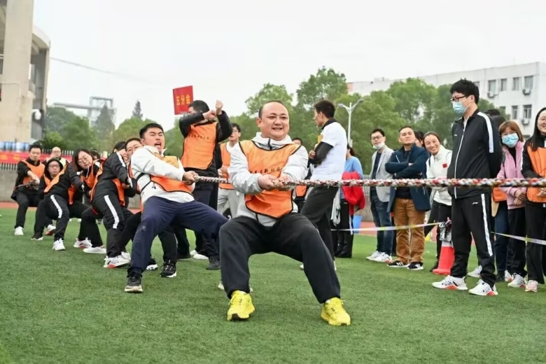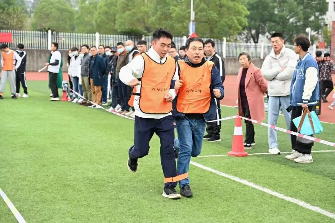 期间,教职工趣味运动会于当日上午举行,分“袋鼠运瓜”、“一锤定音”、“两人三足”和“拔河”四个赛项接力进行。六个分会的参赛教职工斗志昂扬、奋勇拼搏,协力同心完成了所有赛项。