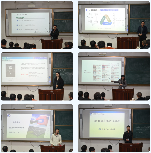 来自二级学院的6名新进教师选取本学期授课课程中任意知识点、技能点依次进行了课堂教学展示,展现了各自独特的教学风格和扎实的专业功底。