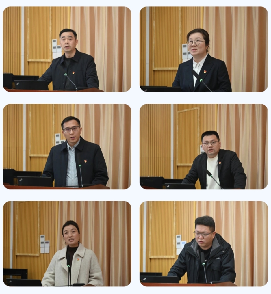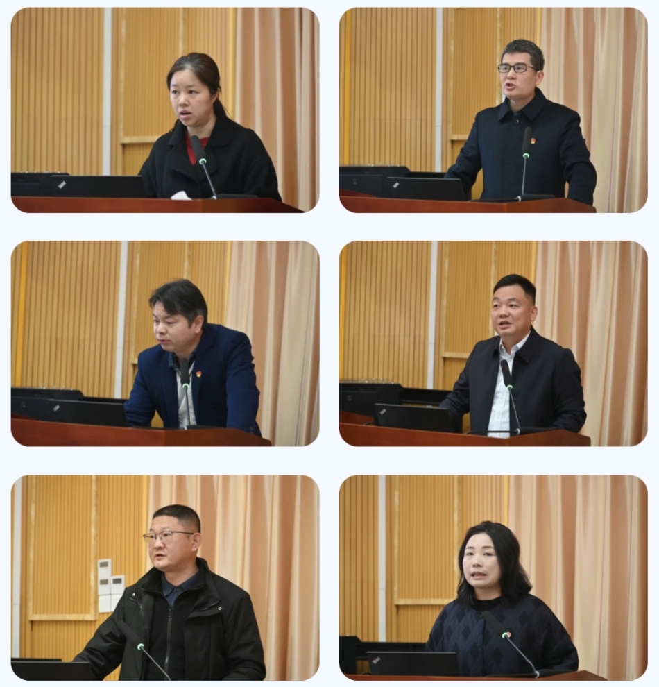 各部门、各单位相关负责人就2025年度工作进行现场述职。与会人员以无记名投票方式对全体中层干部开展民主评议。