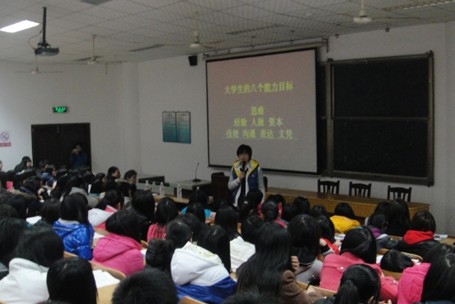 本次讲座的主题是“跟迷茫说再见”,主要针对我院大一同学在学习和生活上存在的困扰,刘兴奇用自己的亲身经历告诉同学们不要自己放弃自己。同时对同学们提出了大学生的八个能力目标,让同学们找到学习和生活的指南针,给自己定位。最后寄予同学们“世界精彩,人生短暂。勇于蜕变,绝不平庸!”