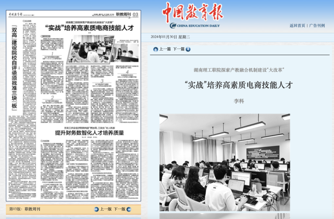 湖南理工职院与阿里巴巴共建“湖南理工职院—阿里巴巴数字贸易产业学院”,厘清、统筹与兼顾学校、企业、学生等多方资源、职责、利益和制度,探索产业链、创新链、教育链的有效衔接机制,打造以“实战课堂”为核心的“1+6+6”人才培养新模式,即1个月的校内真实场景理论和企业文化学习、6个月的校内阿里平台真实账号和真实项目实战、6个月的校外专业对口企业真实项目顶岗实习。经过一期的实战训练,学生们实现电子商务技能从“小白”到“熟手”再到“高手”的华丽蜕变。