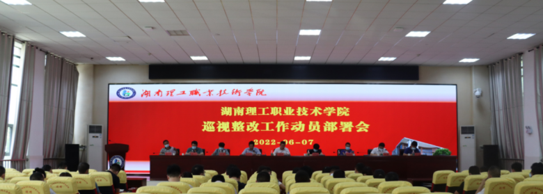 6月9日,湖南理工职业技术学院党委召开落实省委第一巡视组巡视意见反馈整改任务工作动员部署会。会上学院党委副书记朱奇卫从巡视整改方案的形成过程、主要内容等方面对《落实省委第一巡视组延伸巡视湖南理工职业技术学院党委反馈意见的整改方案》进行了解读,重点介绍了学院巡视整改步骤的三个阶段,并对各阶段的主要任务进行安排部署。叶星成代表学院党委就整改工作提出三方面要求,一是务请高看重看,扎实做好巡视整改”后半篇文章”;二是务必落细落小,全面确保巡视整改任务落到实处;三是务求见效见果,不断加强巡视整改成果综合运用。