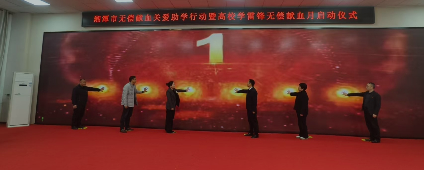副校长王凤斌出席仪式,全校师生代表齐聚现场,共同参与此次爱心盛会。活动得到湘潭市相关单位的高度重视与大力支持,共青团湘潭市委副书记龚健康、湘潭市红十字会专职副会长颜曼玲、湘潭市卫生健康委员会副主任杨孜、湘潭市中心血站党总支书记张俊良,党总支副书记、站长周祖皇等应邀出席。