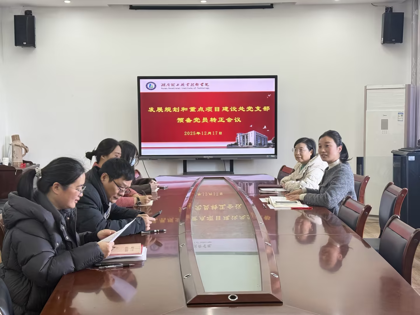 为严格落实发展党员工作程序,保持党员队伍先进性和纯洁性,发展规划和重点项目建设处党支部于2025年12月17日下午在求实楼四楼会议室召开全体党员大会,讨论预备党员曹辉同志按期转正事宜。党支部全体党员及入党介绍人葛庆同志参加会议,会议由党支部书记徐军同志主持。