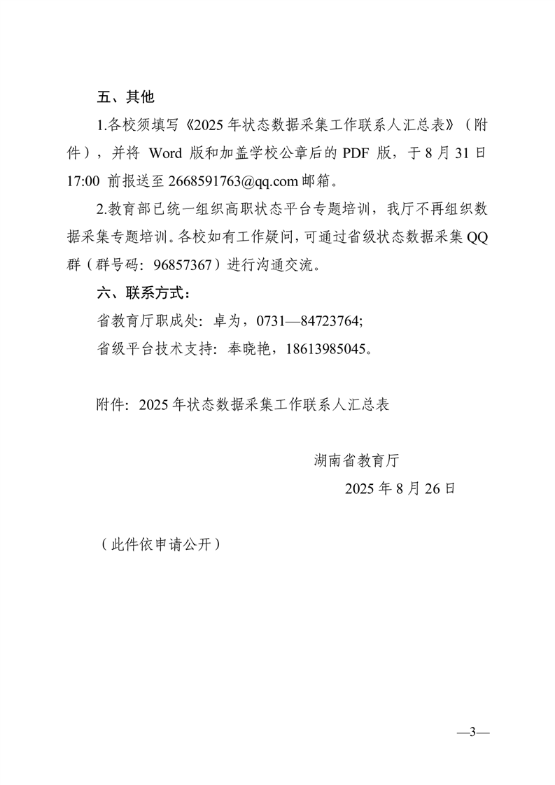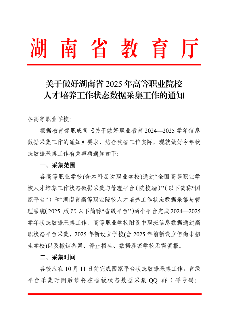 关于做好湖南省2025年高等职业院校人才培养工作状态数据采集工作的通知