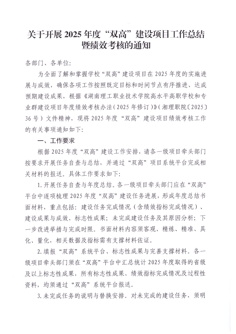 关于开展2025年度“双高”建设项目工作总结暨绩效考核的通知