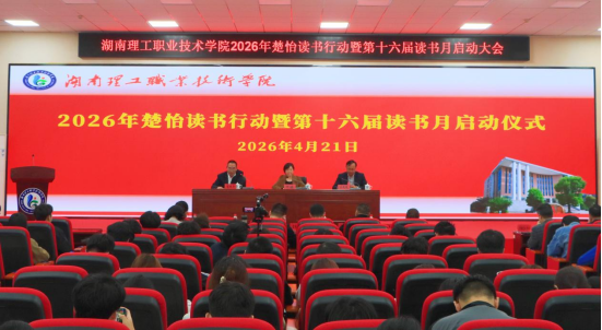 何瑛作题为《书香浸润理工 阅读照耀青春》的动员报告,并宣布“湖南理工职业技术学院2026年楚怡读书行动暨第十六届读书月”正式启动。