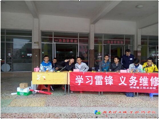2015年11月8日,由院团委主办,社联电子科技协会联合学联青年志愿者服务中心承办的“学习雷锋,义务维修”活动如期举行。电子科技协会的各位成员,于上午8:30~16:30在学院食堂前坪为全院师生免费维修各类小功率电子电器。