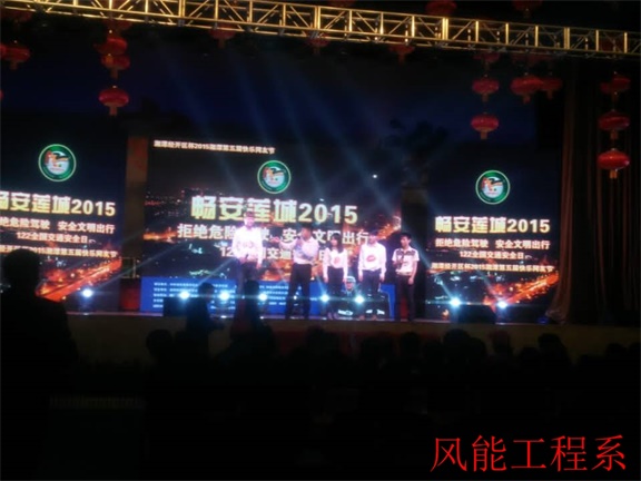 主办方以及各界代表欢聚在城建职院,共同观看专题晚会。湖南理工职业技术学院风能工程系学生周龙、饶敏恭、颜晓岚、樊孝彬、张浩东以相声《酒驾》参加演出,他们出色而又精彩的表演,给观众带来喜悦的同时而又让观众深刻认识到酒驾的危害。