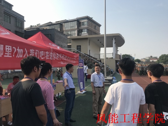 同时,就在训练场地旁边,风能工程学院纳新工作正如火如荼的开展,校党委书记叶星成一行也亲切看望了正在进行纳新的学生会成员,对纳新工作的开展情况进行了详细了解,并对风能工程学院学生会的纳新工作给予了肯定。