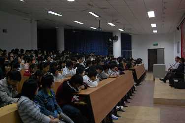 当晚,王建军部长以“提升软实力,实现强国之道”为主题展开话题。王部长首先通过软实力和硬实力的对比,介绍了软实力的内涵。接着概括的阐述了软实力的信息、创新、文化等十大基本要素。然后用当代社会现象和典型事例对软实力的基本要素作了进一步的说明。最后重点谈论了大学生毕业后如何求职的问题。王部长通过对中、美大学生行为规范准则的比较,中肯地指出了中国学生软实力的培养缺乏实际性。