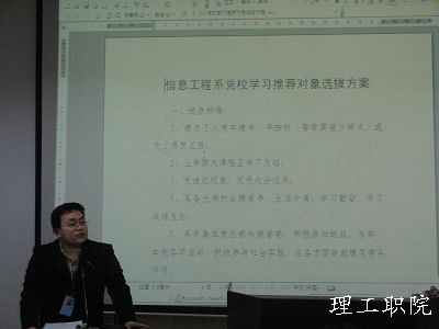 院学生党支部书记罗湘老师向各位学生会成员详细的解说了入党的程序以及选拔标准,并向有入党意愿的同学提出了要求和建议。