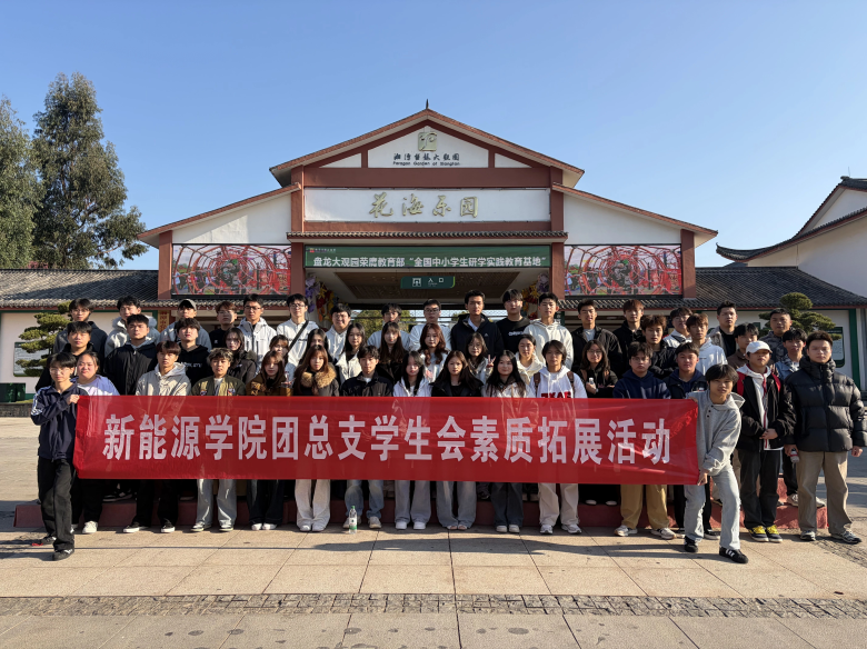 11月22日的早晨,阳光把湘潭盘龙大观园的门牌晒得发亮——新能源学院团总支学生会的师生们带着满格热情,在这里开启了一场“凝心聚力,逐光同行”的素质拓展之旅。镜头按下的瞬间,红色横幅上的“素质拓展活动”,成了今天最鲜活的注脚。