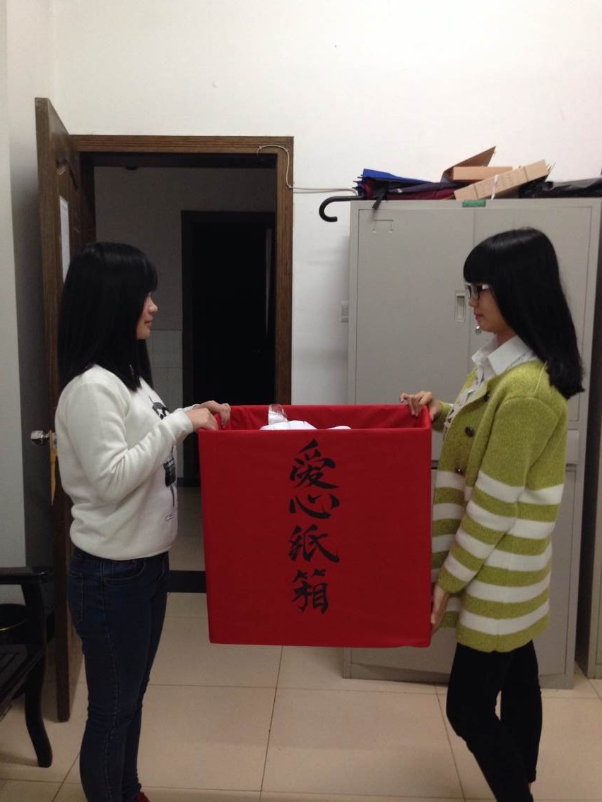 4月1日上午实践活动正式开始,我系两名同学自备纸箱在课余时间在三教学楼及办公楼的各办公室收集废弃的旧报纸。第一次的尝试,结果让人喜悦,在老师们的积极配合下我们的工作顺利进行。往后,每天将会安排两位同学在课余时间到各办公室收集废弃的旧报纸。