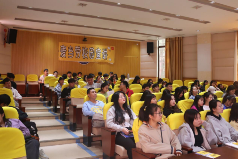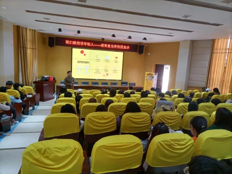 10月27日上午在知行楼105召开麦当劳专场校园宣讲会,参加本次会议的有麦当劳招聘负责人肖赵杰,校招老师文利以及19级工商企业管理专业全体学生。