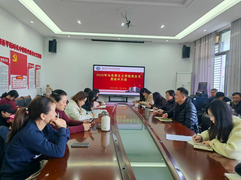 为持续加强党员思想理论武装,2025年11月18日下午,马克思主义学院党总支在党员活动室407组织召开第13次思政半月谈集中学习。会议由党总支书记、院长田野同志主持,部门全体成员参与学习。