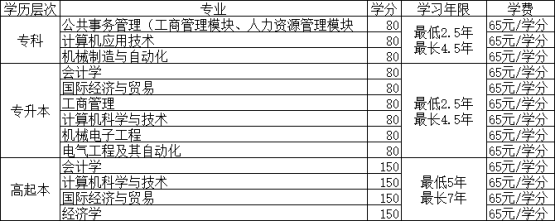 二、招生专业、学历层次、学分和学习年限