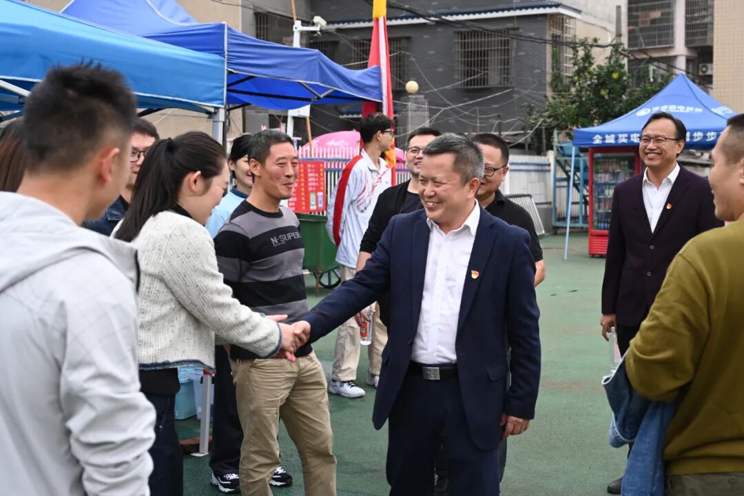 微党课开始前,党委书记叶星成率领在家班子成员及相关部门负责人,深入军训场地,亲切看望并慰问了承训教官和2025级新生。活动中,叶星成一行实地查看了“四个一”落实情况,并与新生辅导员们进行了深入交流,细致了解学生训练进展和思想状况。