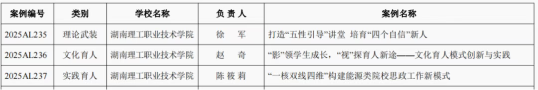 近日,中共湖南省委教育工作委员会、湖南省教育厅、湖南中南传媒公益基金会联合公布2025年度湖南省高校第一批思想政治工作优秀案例评选结果,我校共有3项案例成功入选。 本次报送案例立足于学生成长发展需求与学校办学特色,覆盖了理论武装、文化育人、实践育人等思政工作重要领域,充分发挥了思政引领力的支撑作用,体现了我校在构建固本铸魂的思想政治教育体系中的深入思考和有效实践,展现了我校思想政治工作的创新成果。 下一步,我校将以此次评选为契机,落实“立德树人”根本任务,深入总结案例背后的育人规律,加大校内推广力度,持续打造具有我校特色的“大思政”工作格局,探索新形势下加强和改进思想政治工作新方式、新方法,以点带面推动全校思想政治工作质量整体提升。