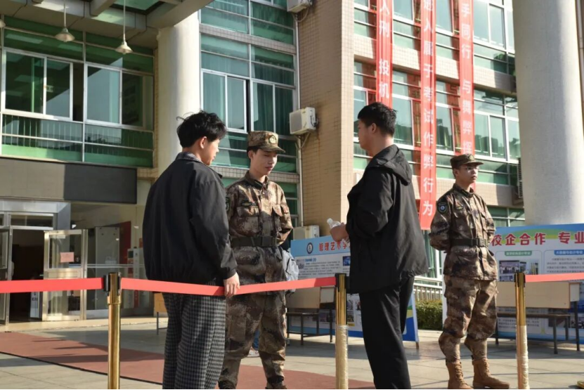 为确保考试安全平稳、公平公正,学校高度重视,进行了周密部署。招生就业处、教务处、学工保卫部、后勤处、纪检监察处及各二级学院等多部门协同联动,从考前宣传、考务组织、安全保卫、技术保障、后勤服务到全程纪律监督,形成了高效有力的保障体系。校团委组织的百余名学生志愿者也为考生提供了细致的引导与咨询服务。