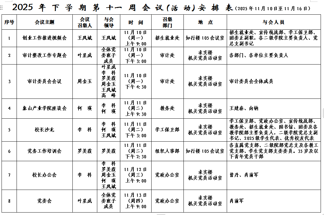2025年下学期会议安排表(第十一周)