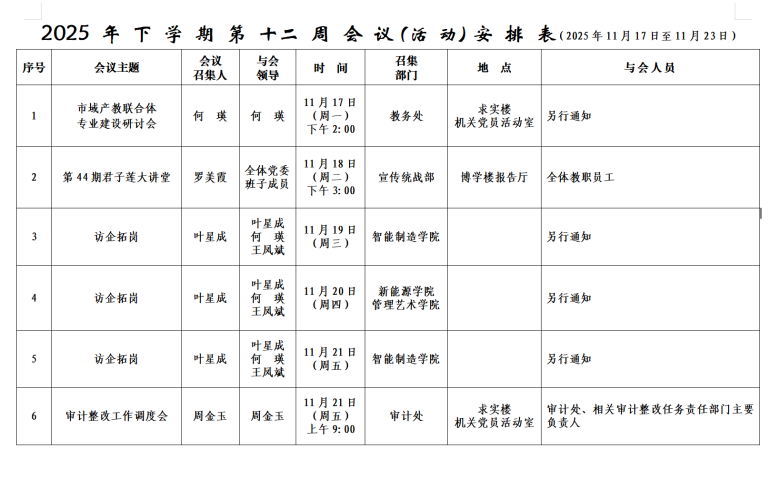 2025年下学期会议安排表(第十二周)
