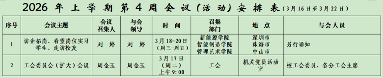 2026年上学期会议安排表(第四周)