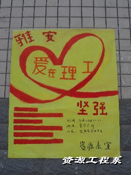 4月20上午8:02,四川省雅安市芦山县发生7.0级地震,造成重大人员伤亡。为响应全国上下如火如荼的救灾援建工作,资源工程系4月24日下午在食堂前坪举行了,“心系雅安,为雅安祈福”募捐活动。