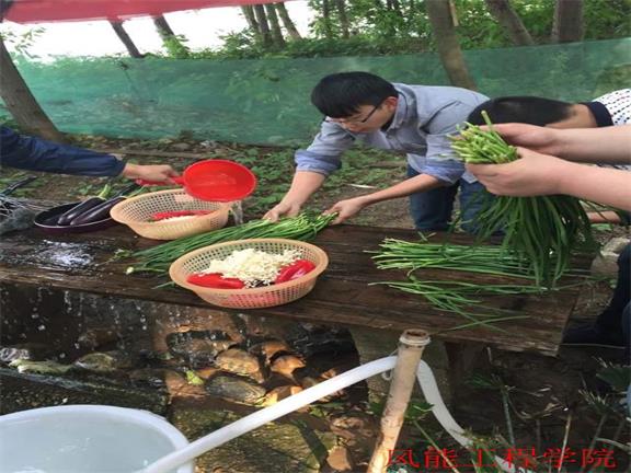 21日下午16:00,全班同学到达活动地点,全班同学分为五组进行烧烤活动,同学们踊跃动手,在一片翠绿大树林中,七八个四方灶子,一条长长黄沙河,四十几号人凑成了这精彩热闹的场景。树林南边五六个同学择菜,幽绿的韭菜、亮紫的茄子、嫩黄的上海叶、瓷白的金针菇等;树林东边的同学荡着的秋千、摇着的吊床;剩下的同学围着几个灶子井然有序做着烧烤的准备工作,敲打声、折枝声、烧火噼里啪啦声为此竞相添色,正在努力添柴火的同学,猫着腰,手里拿着火钳往灶膛里添着树枝和炭块,红红的火印在他的脸上,已有几道黑印子的脸也慢慢的浸出了几行汗水,脸都成了大花猫,顿时引起同学们大笑,整个活动现场你追我赶、热闹非凡。。