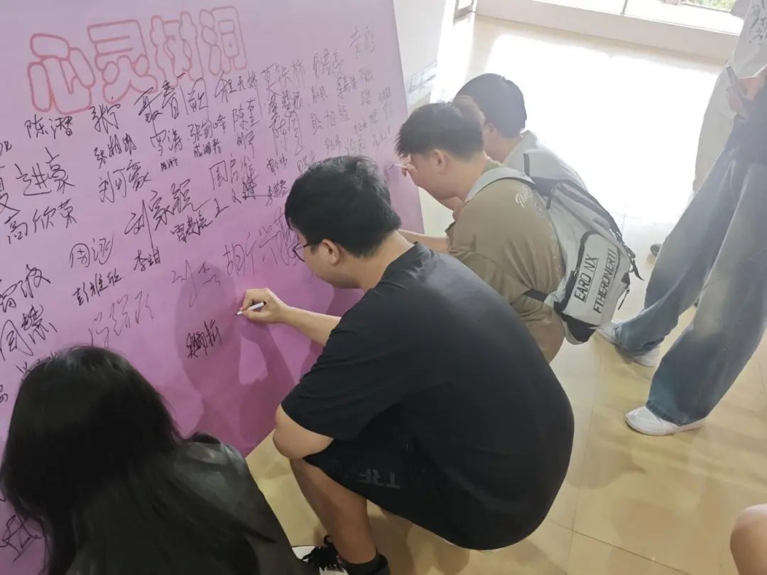 活动现场特设了一面“心理树洞”签名墙,同学们纷纷留下自己的名字,仿佛是在心灵的土壤中播下一颗希望的种子。这不仅是对自我的一种肯定,更是对未来无限可能的一份期许。让我们共同见证,每一颗种子如何在时间的滋养下,茁壮成长,绽放出属于自己的光彩。