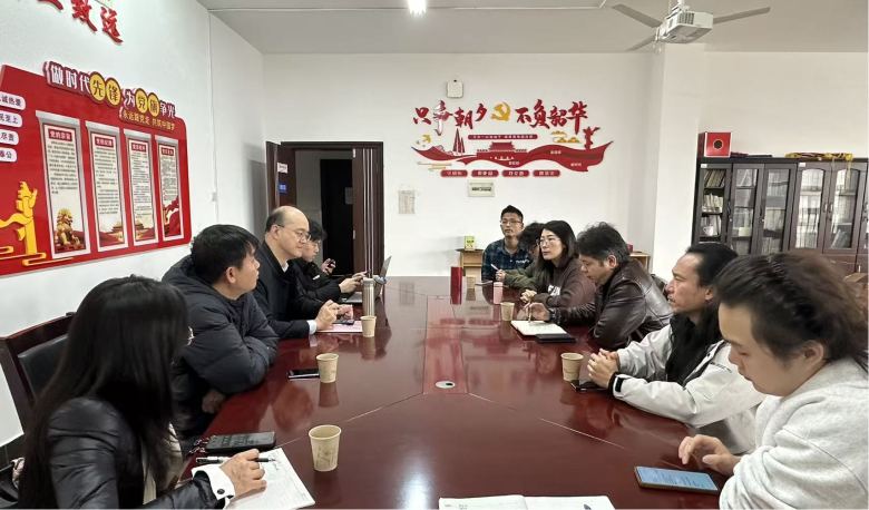上午,交流活动在管理艺术学院党员活动室展开。管理艺术学院负责人夏红雨、数字时尚设计专业负责人廖慧娟、电子商务专业骨干教师丁琪,与唐振华院长、校企合作班企业方负责人冯宇老师以及参赛学生代表等共同参与项目推进会。与会人员围绕赛事进展、阶段成果与后续优化方向展开深入探讨,为项目推进提供了专业指导。