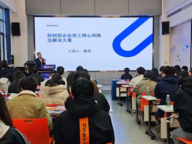 其次是戴领导师为大家带来了一场主题为《初创型企业用工核心风险及解决方案》的讲座。戴领凭借其丰富的实务经验,直击初创团队在用工环节最易忽视的核心风险。他重点剖析了“劳动关系与劳务关系混淆”、“试用期规定执行不规范”、“竞业限制与保密协议条款缺失”及“社保缴纳不合规”等高频问题,通过真实案例揭示了这些风险可能带来的法律与经济后果。